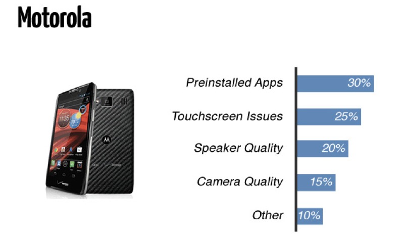 Surprisingly, the highest number of complaints received for Motorola was for its pre-installed apps (Which can’t be uninstalled). This wouldn’t seem like an issue for those with larger storage, but it still consumes some part of the screen and it might cluttered if you don’t want to see the apps on your screen which you never use. And it only goes downwards from here for Motorola, as the other users complained of it touch screen issues, Speaker issues and camera quality issues. It takes the lead when it comes to Battery life, as not a lot of them complained about it. But since the study was about reliability in terms of hardware, Motorola suffers the most owing to the touch screen issues, Speaker issues and camera quality issues.
